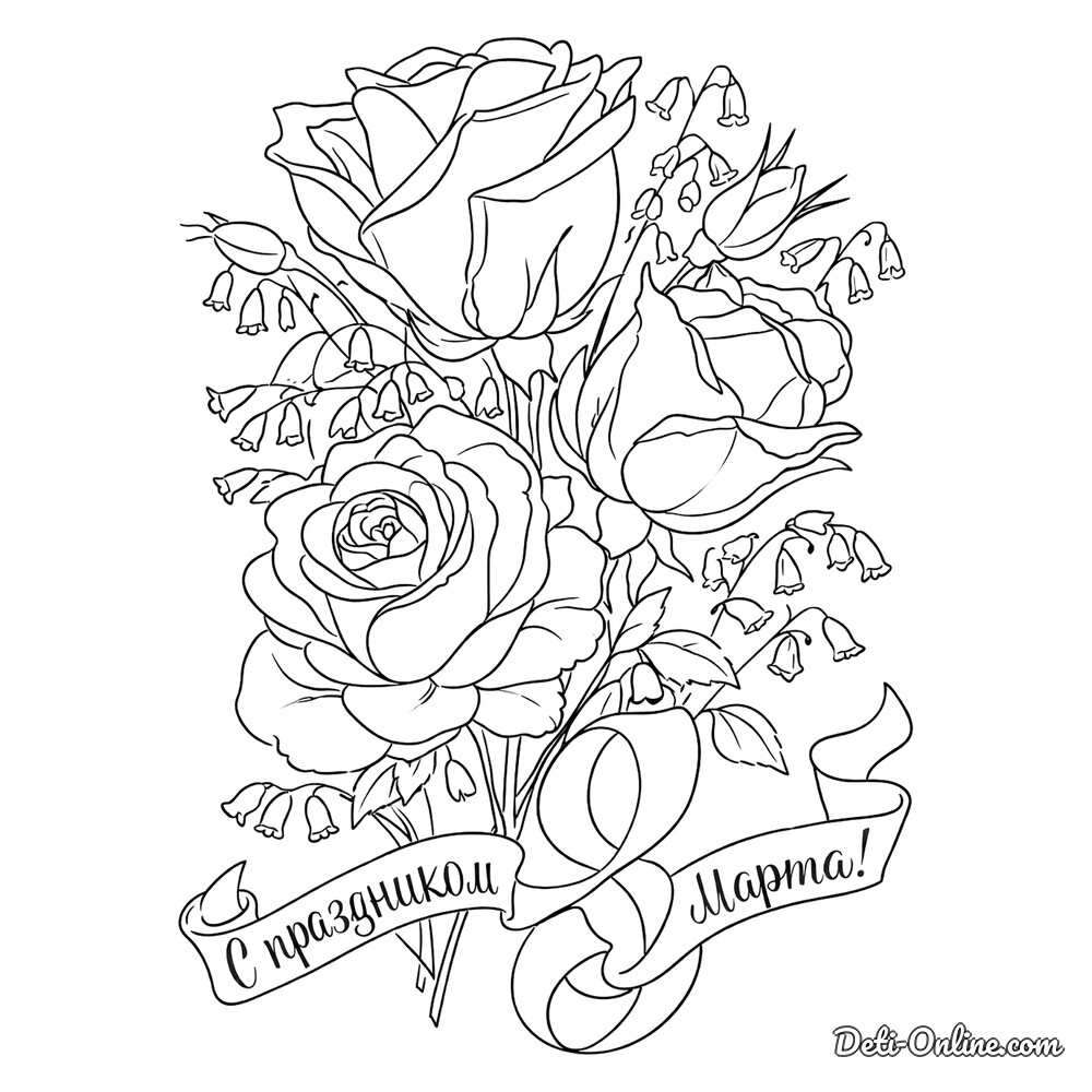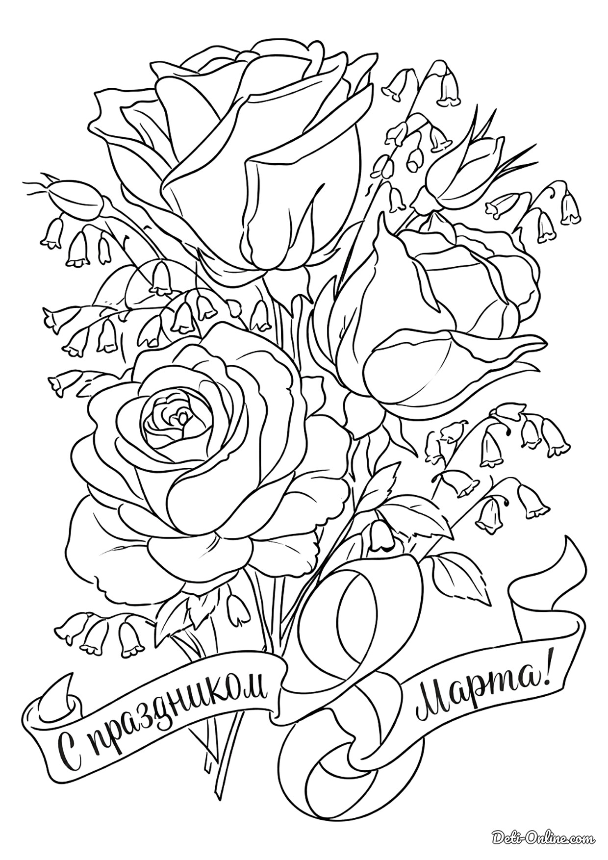 Раскраска «Букет роз и колокольчиков на 8 марта»