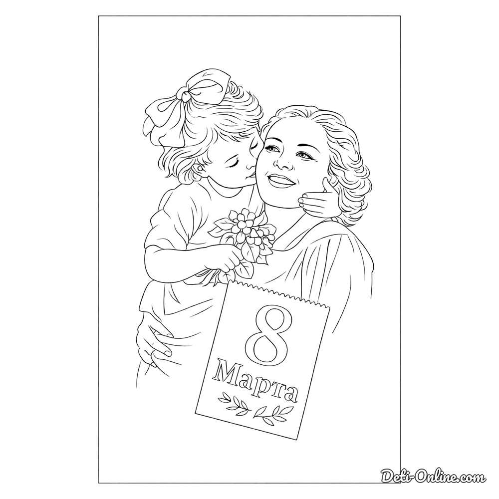 Раскраска «Дочь поздравляет маму с 8 марта»