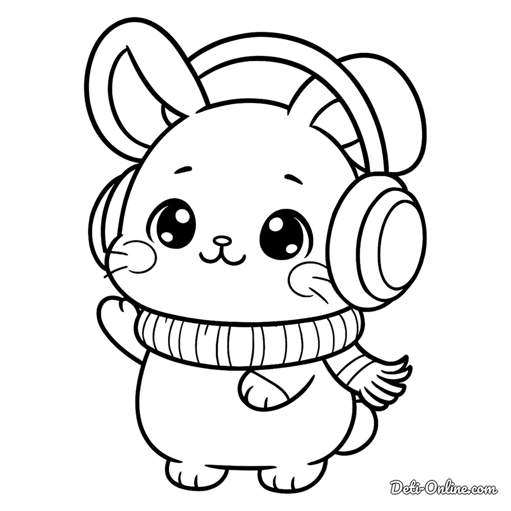 Раскраска «Аниме кролик в наушниках и шарфе»