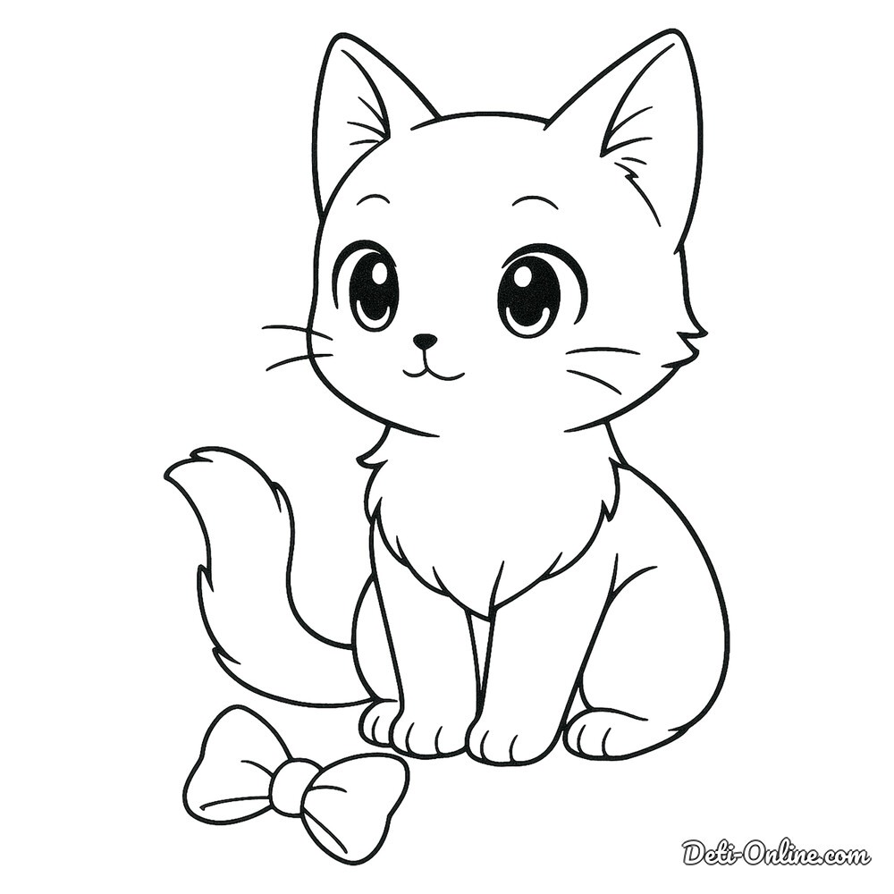 Раскраска Кошка и игрушка-бантик