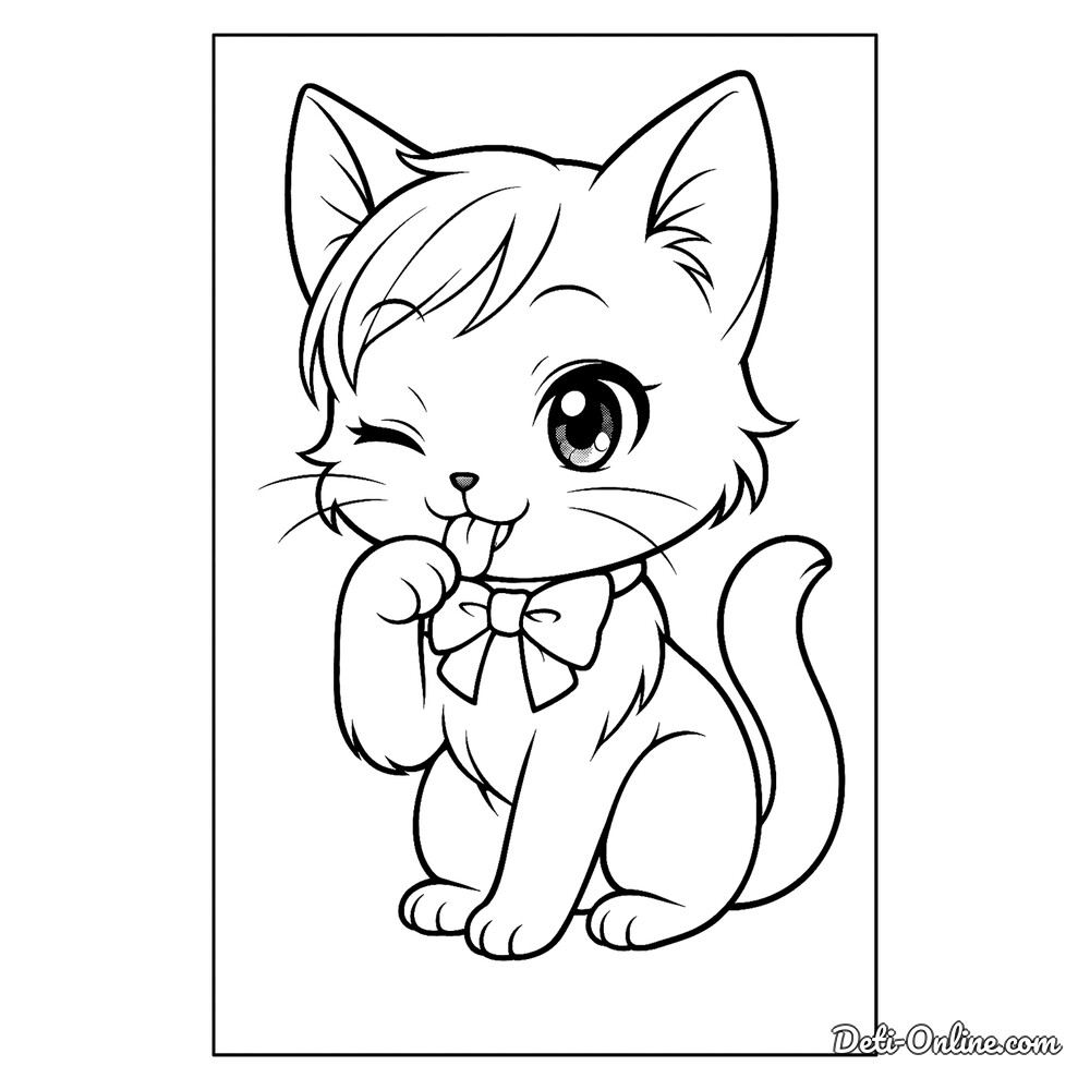 Раскраска Кот облизывает лапу