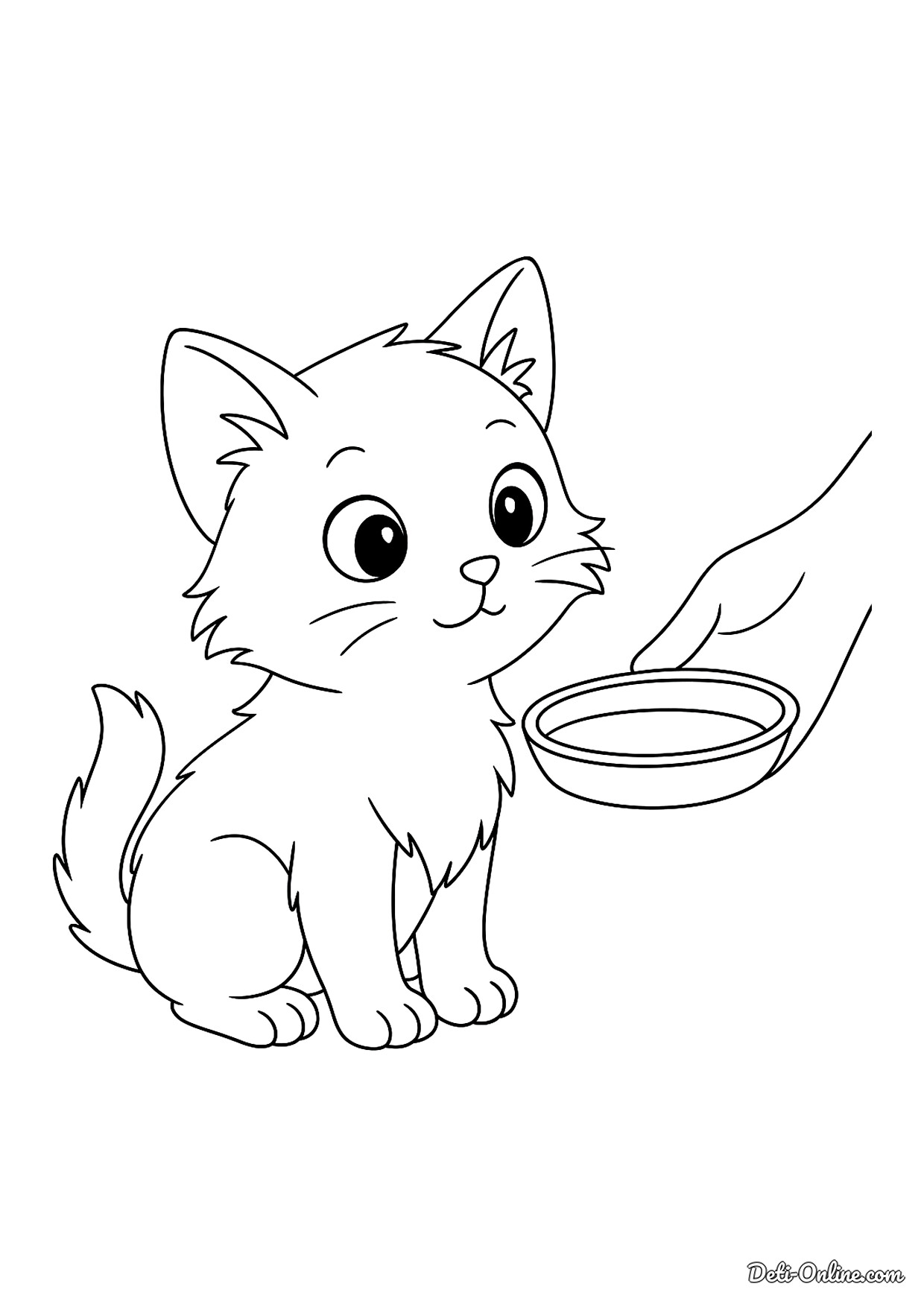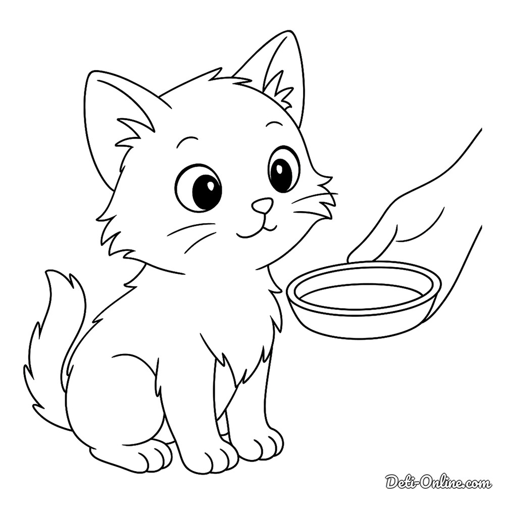 Раскраска Котенку подают миску с молоком