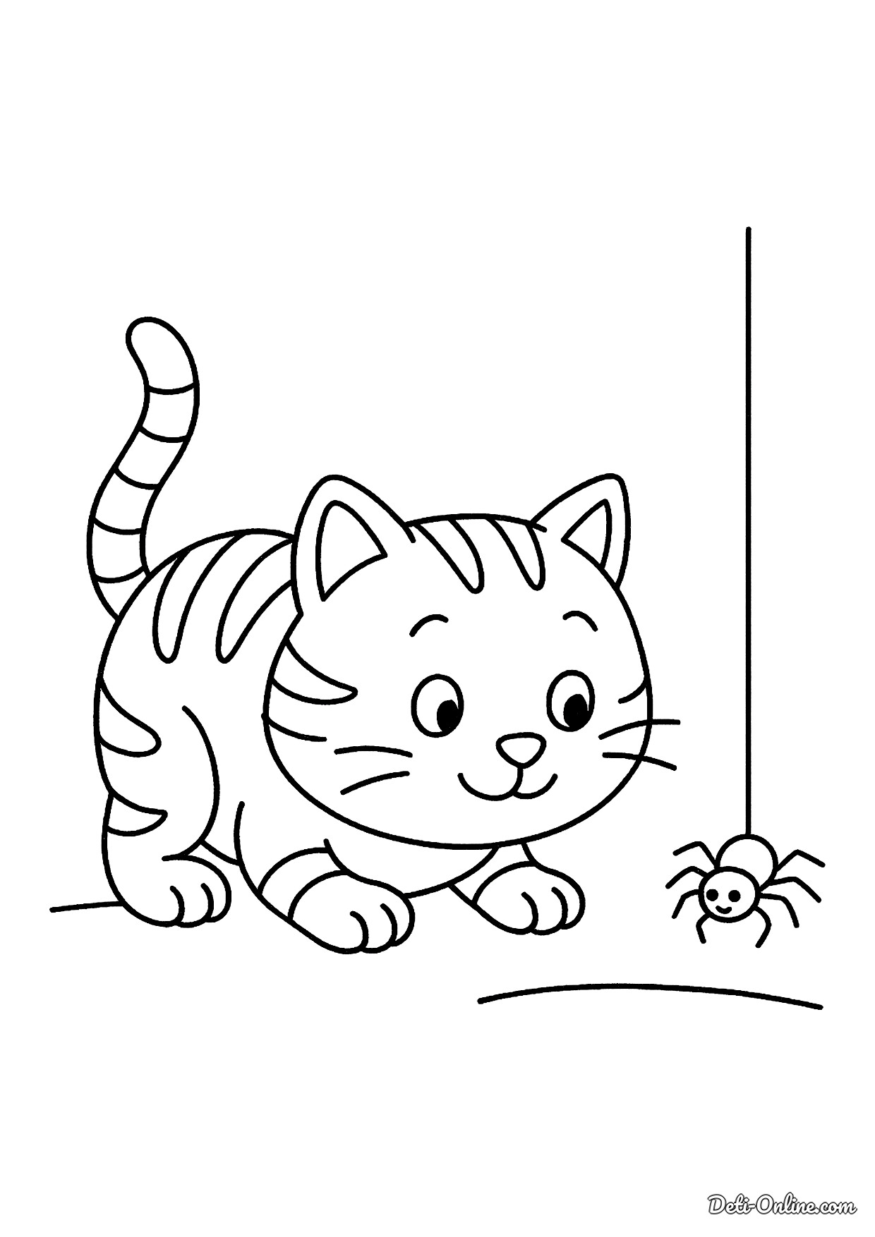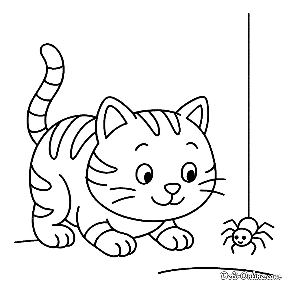 Раскраска Котенок и паук