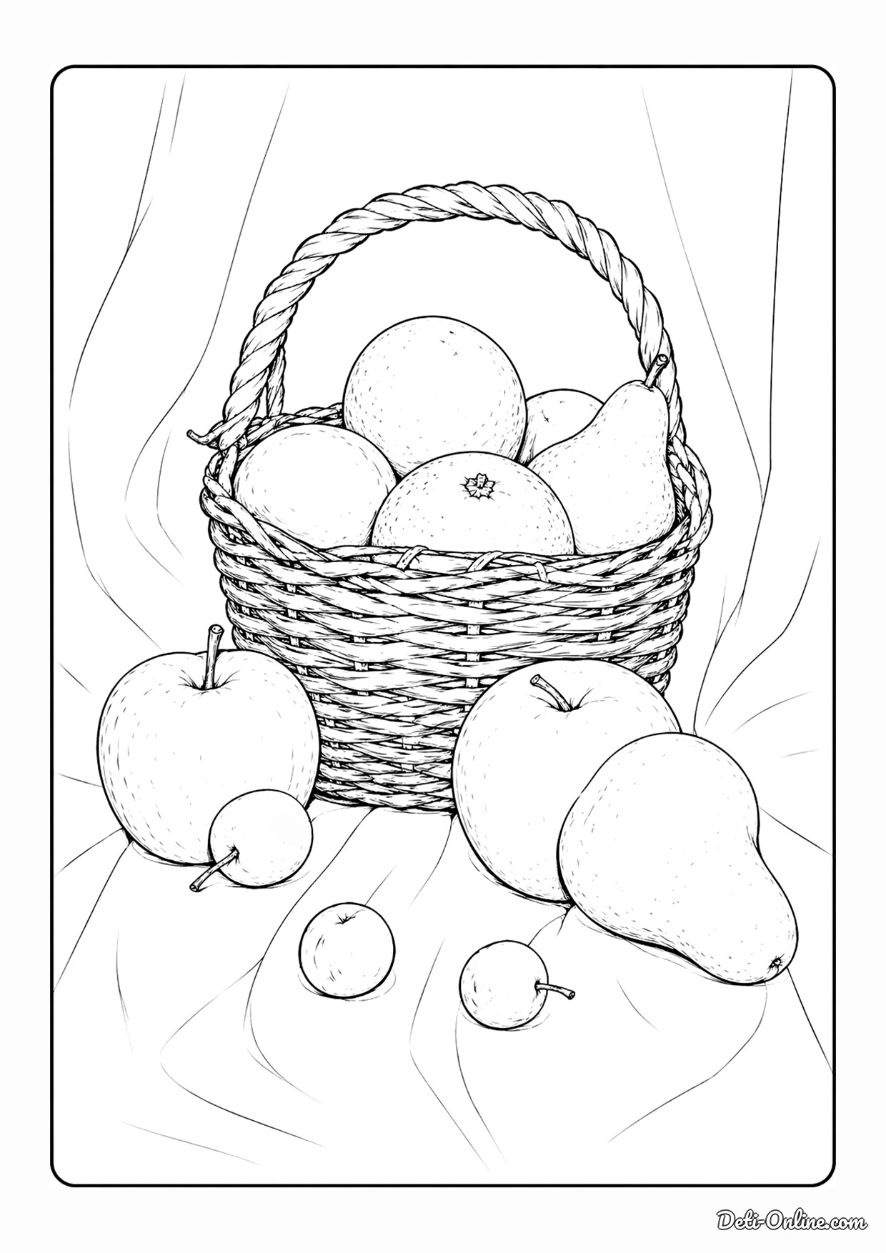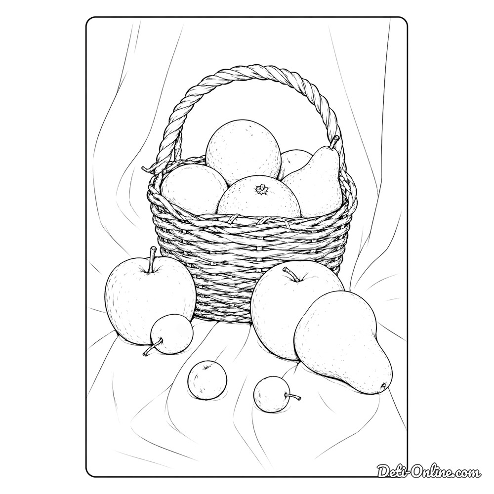 Раскраска «Реалистичная корзинка с фруктами»