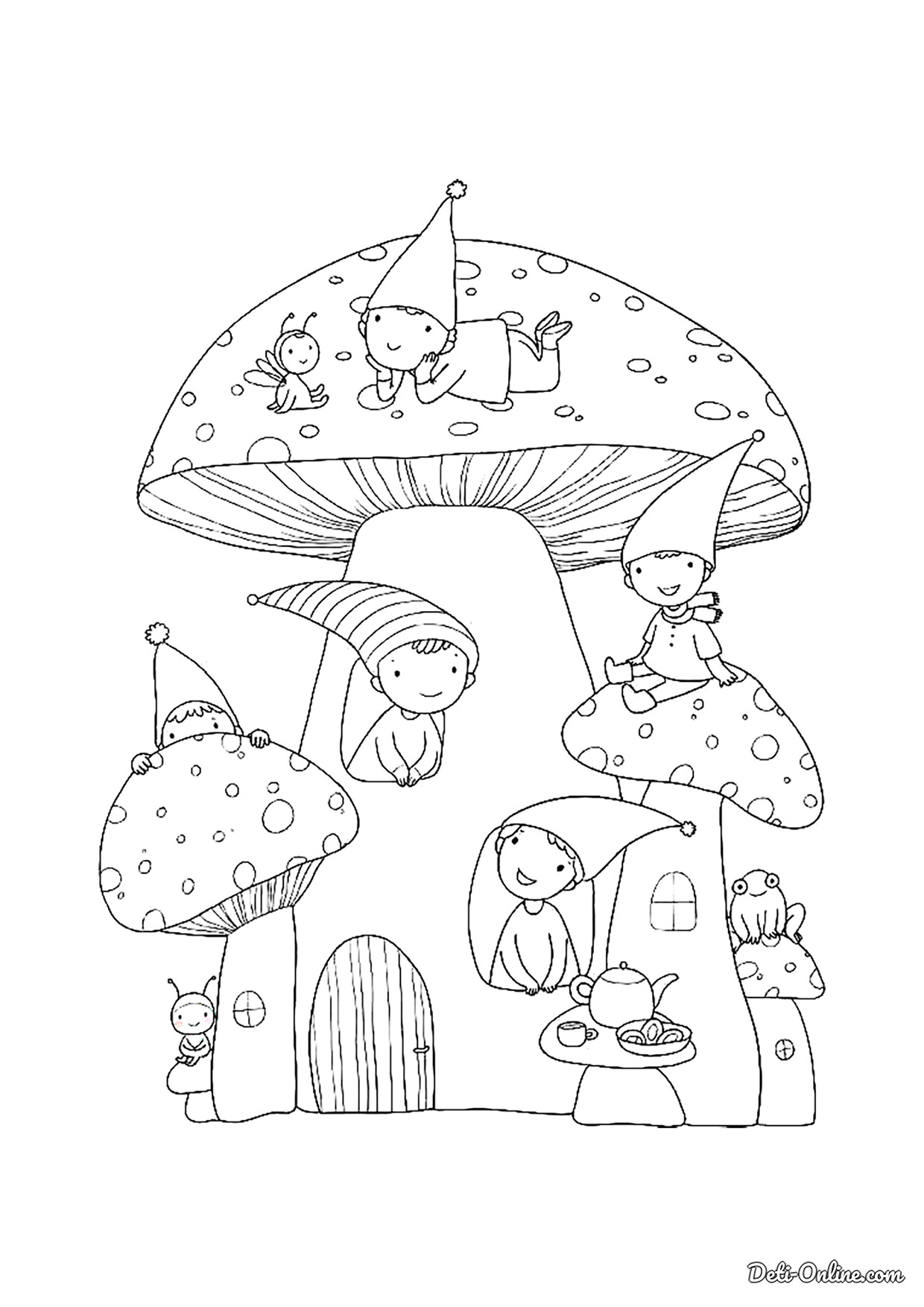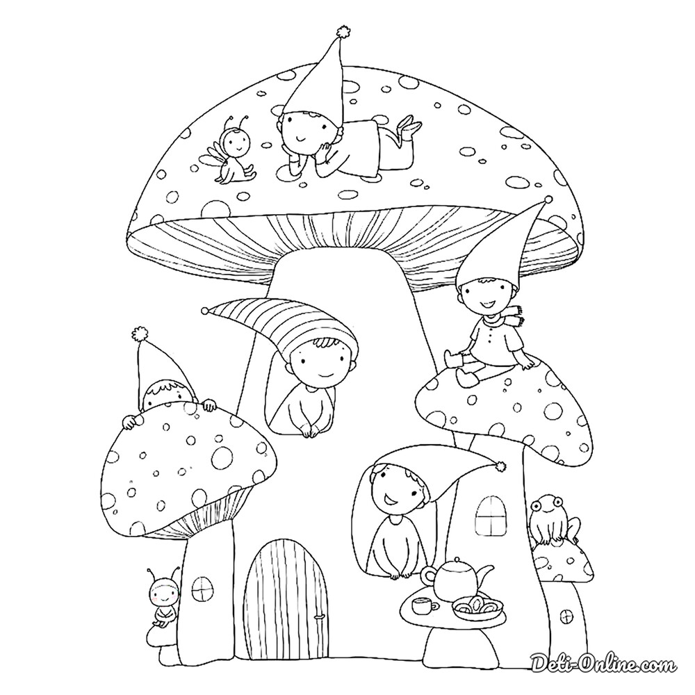 Раскраска «Гриб и семейка эльфов»
