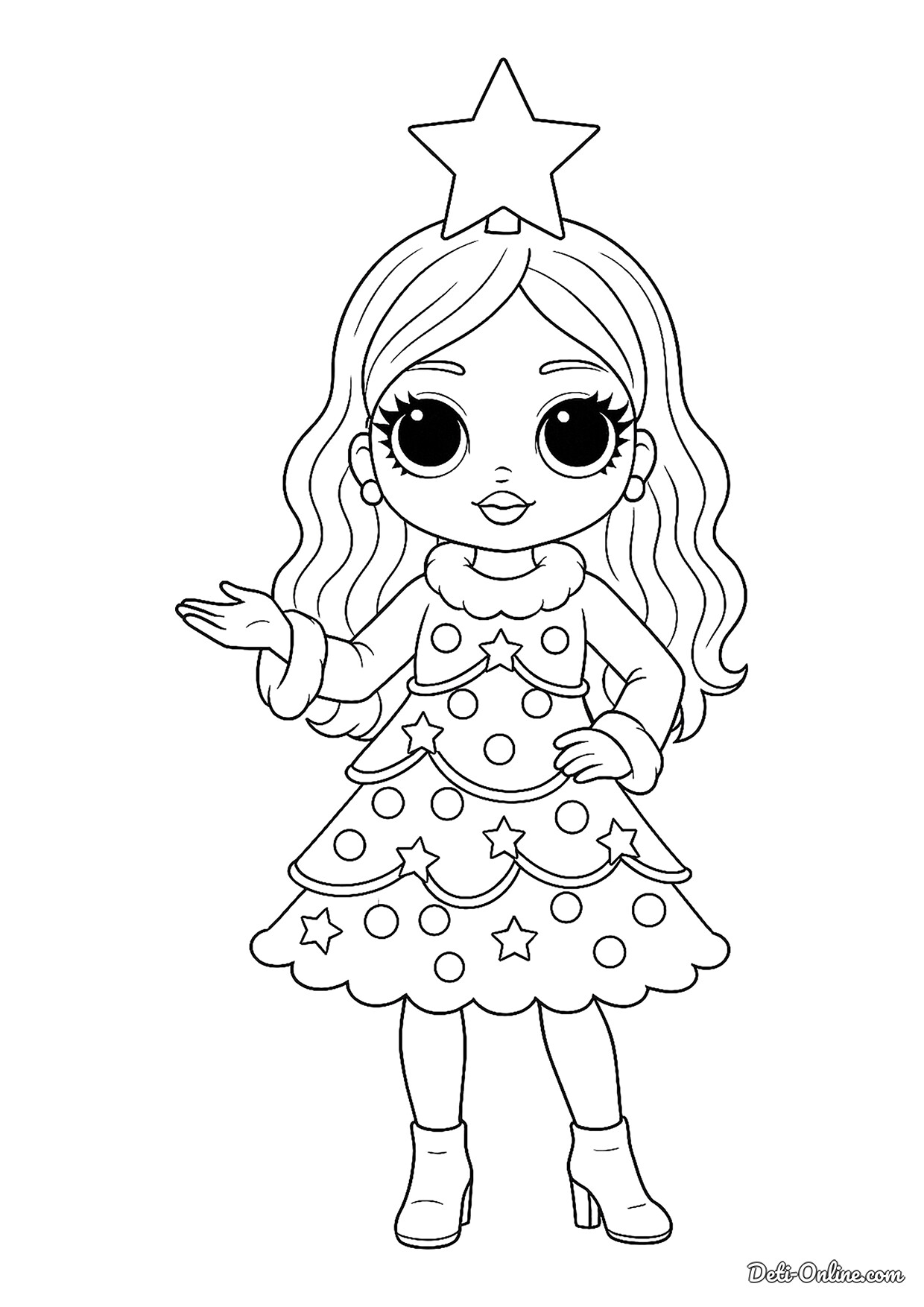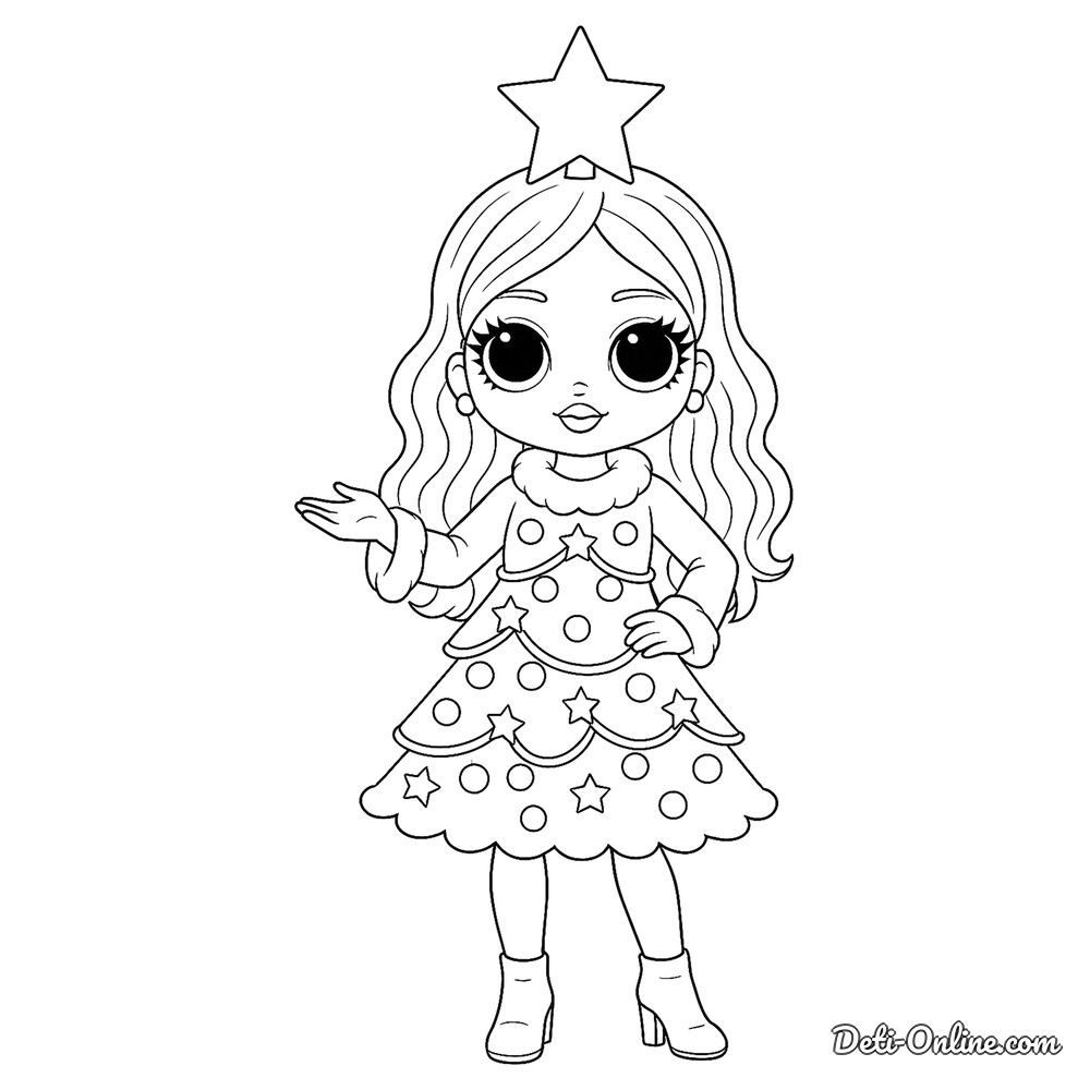 Раскраска «ЛОЛ ОМГ в наряде ёлки»