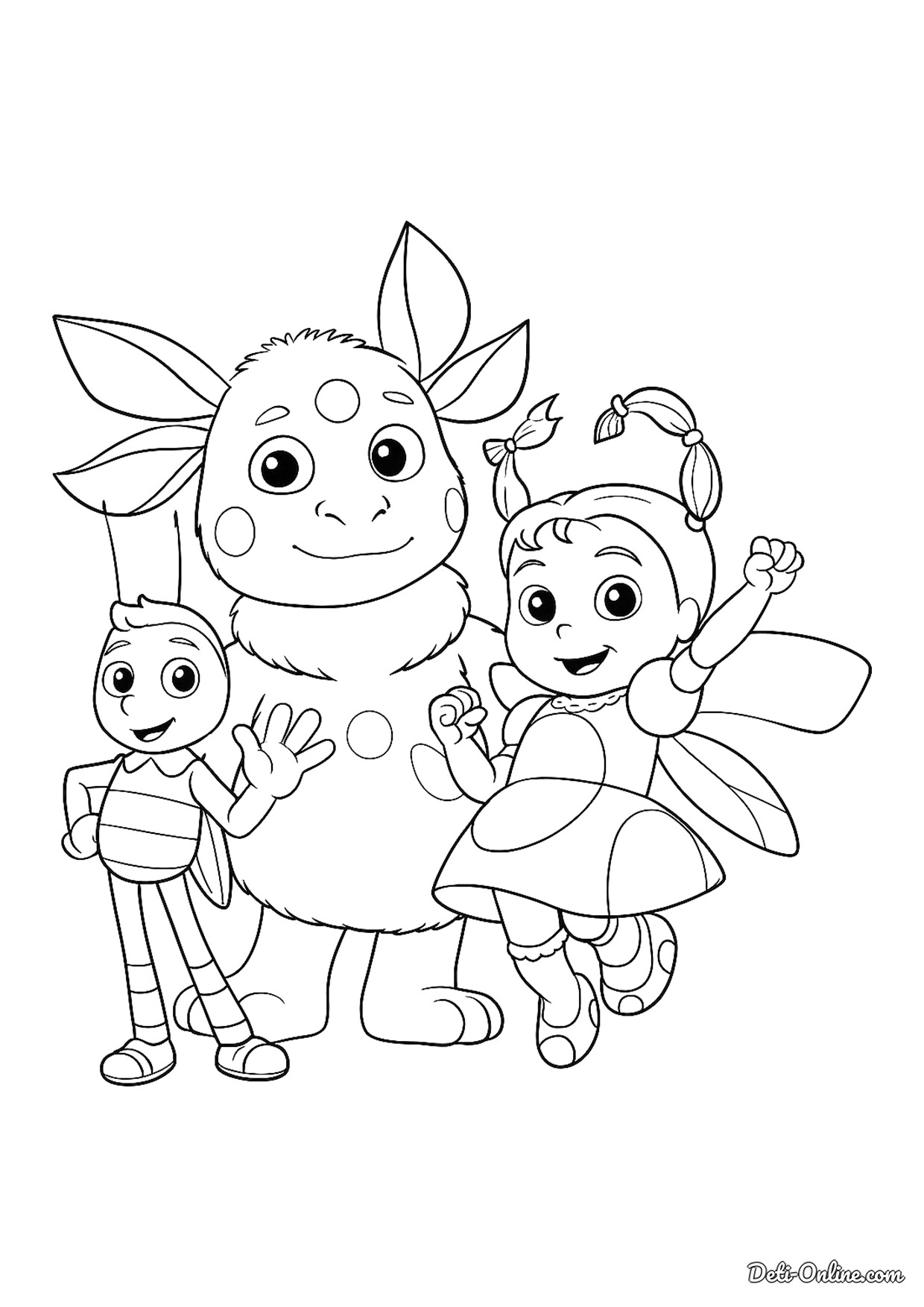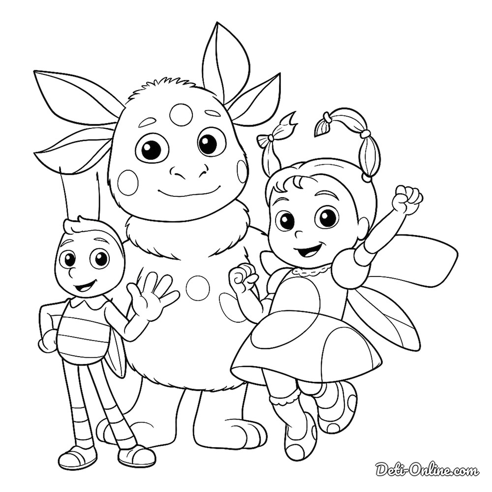 Раскраска «Лунтик, Мила и Пчелёнок»
