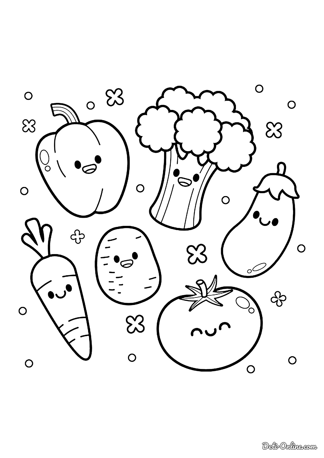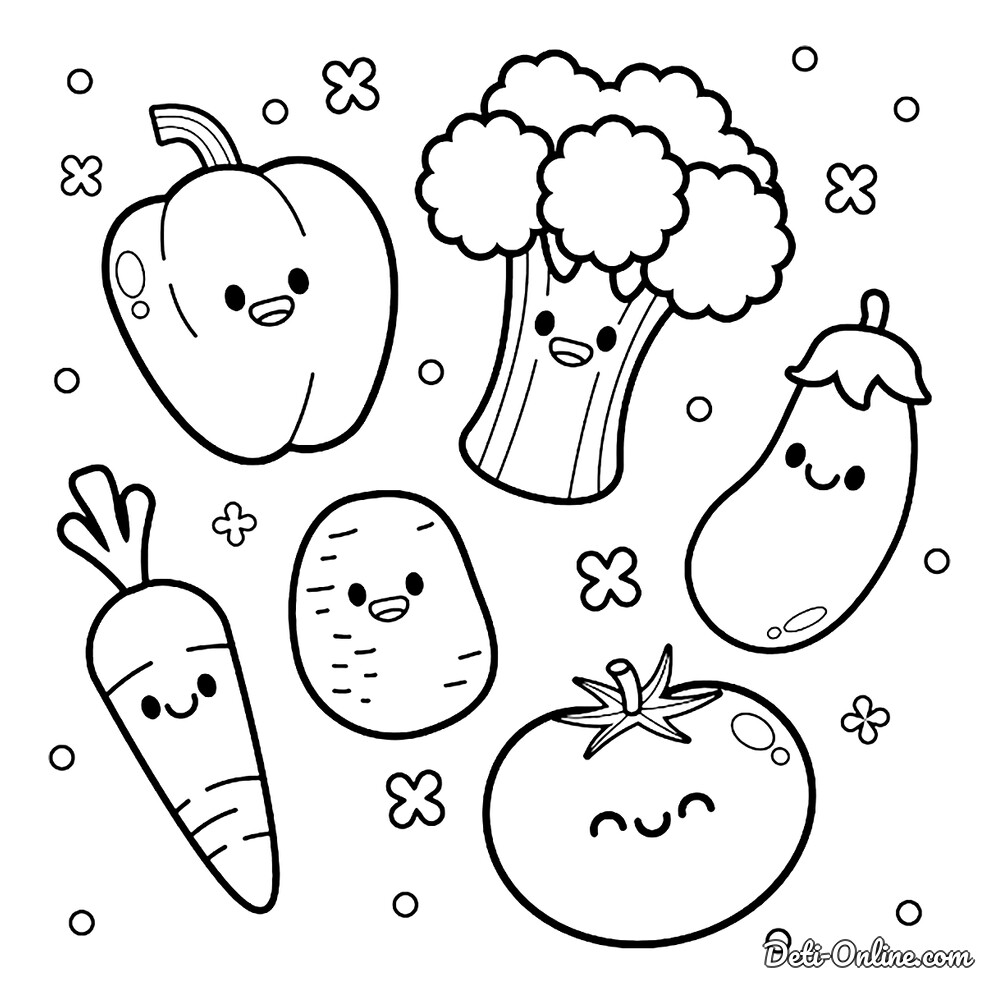 Раскраска «Кавайные овощи»