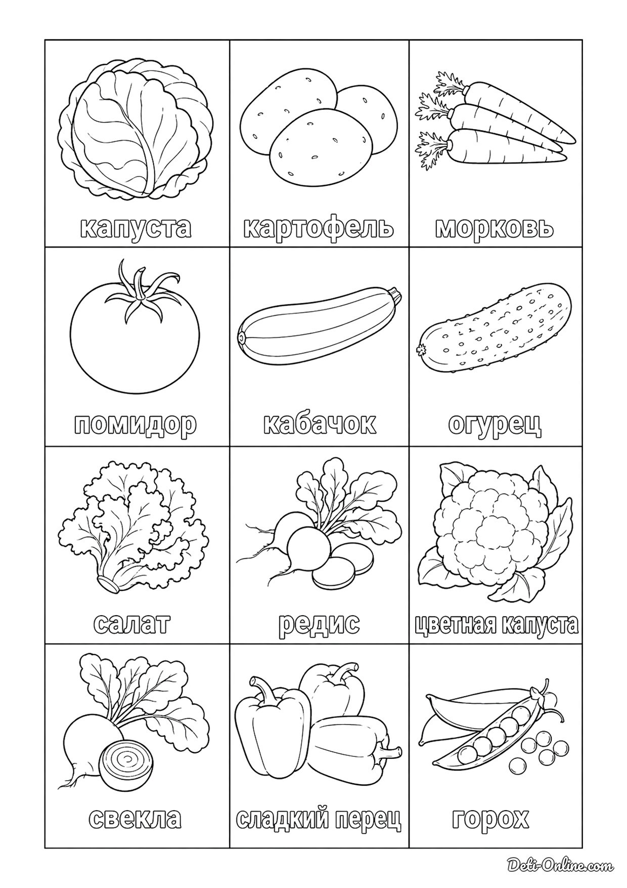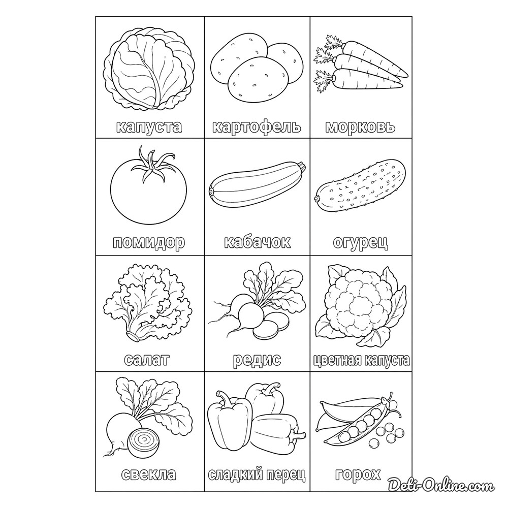 раскраски Овощи