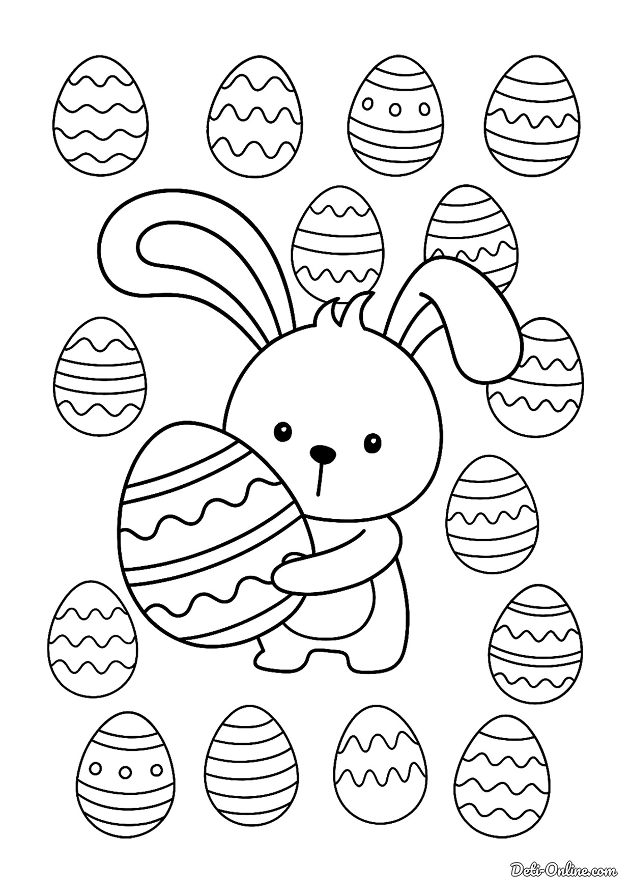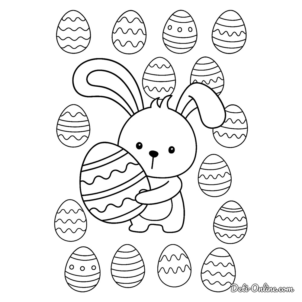 Раскраска «Пасхальный кролик с яйцами для малышей»