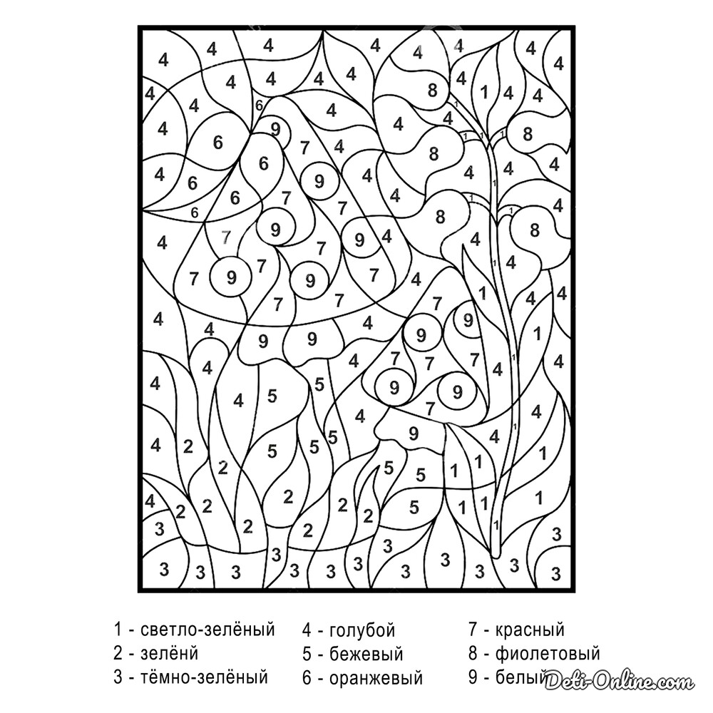 Раскраска «Мухомор по номерам»