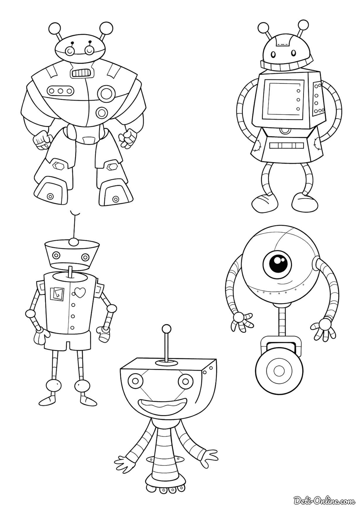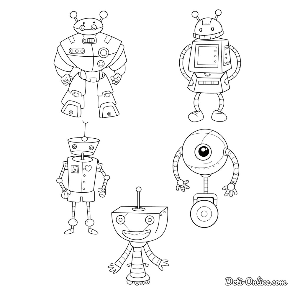 Раскраска «Набор смешных роботов»