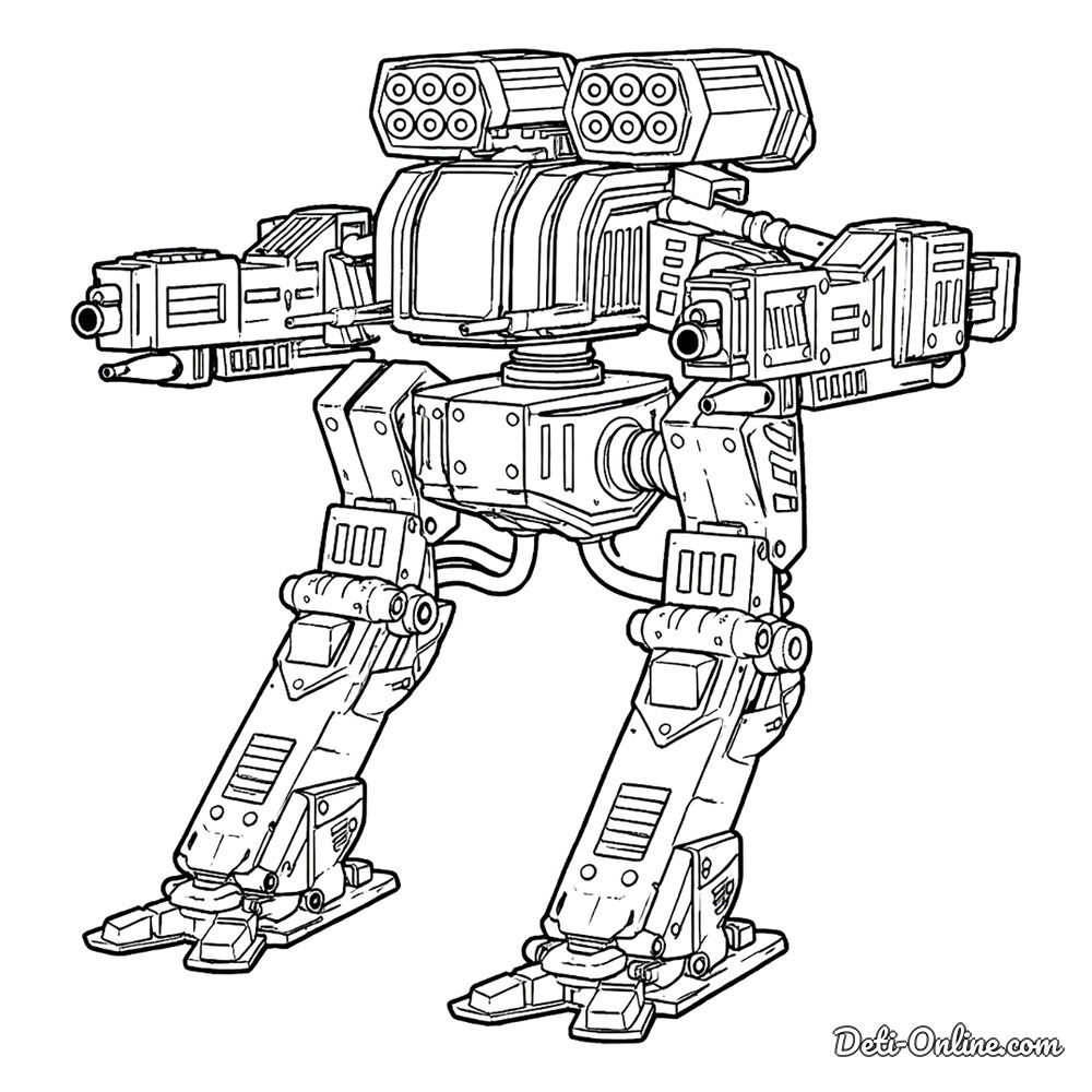 Раскраска «Робот мех с пушками и ракетницами»
