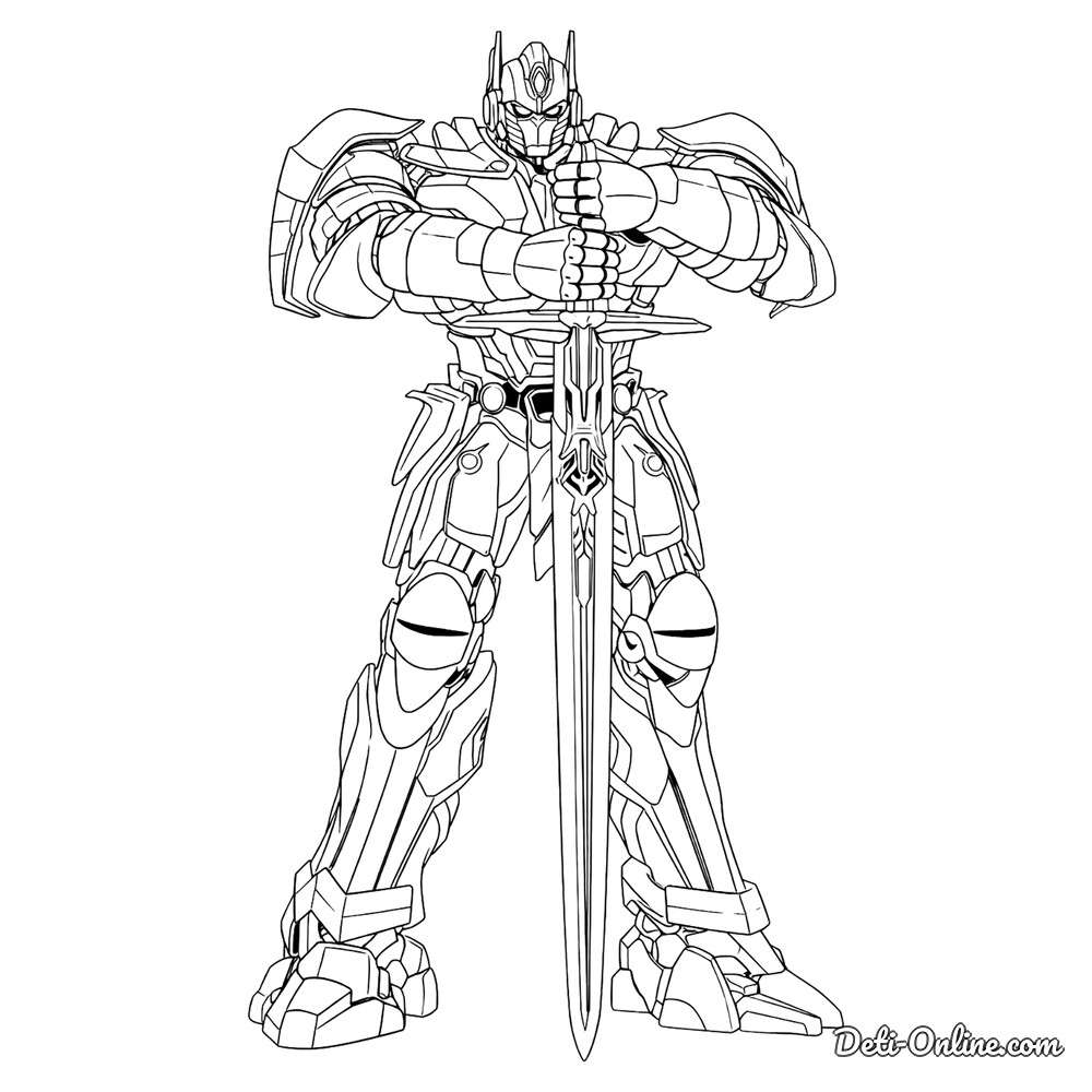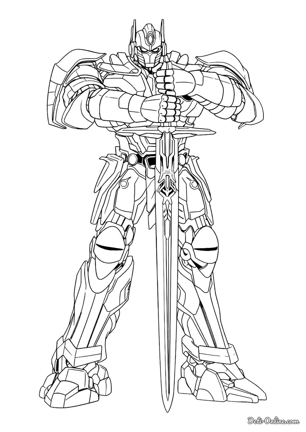 Раскраска «Трансформер Оптимус Прайм с мечом»