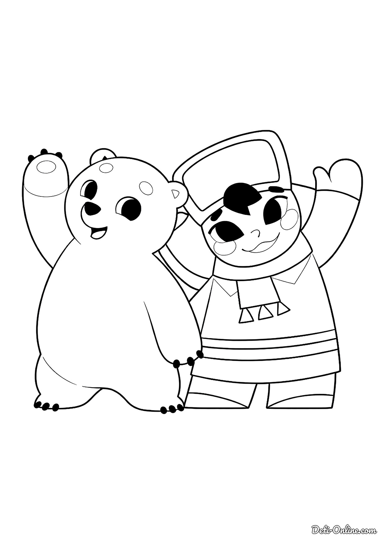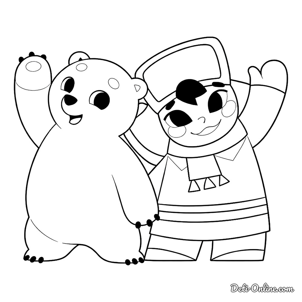 Раскраска «Умка и Тайкэ машут»